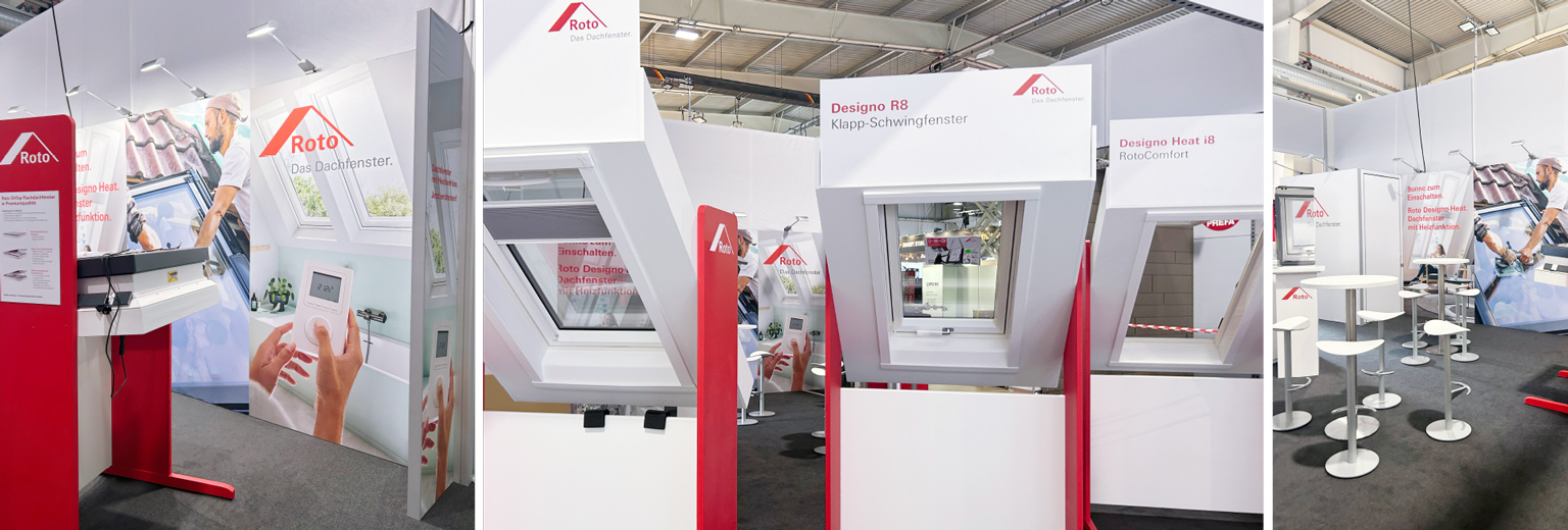 – ein gutes Beispiel dafür, wie sich durchdachte Konzepte langfristig nutzen lassen. Ein weiteres Projekt war der Stand für unseren neuen Kunden Roto. Mit einem individuell abgestimmten Konzept und flexibler Umsetzung konnten wir den Anforderungen gerecht werden und unsere Stärken im modularen und nachhaltigen Messebau unter Beweis stellen.