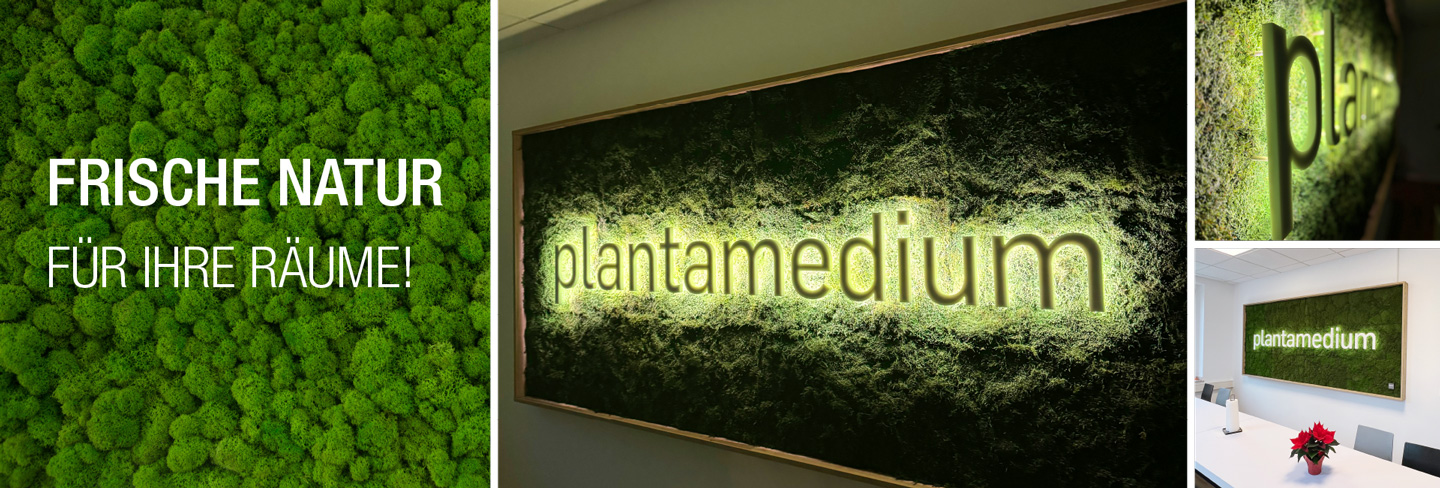 Die neu installierte Mooswand, kunstvoll arrangiert und durch ein hinterleuchtetes Logo in Szene gesetzt, verleiht dem Raum